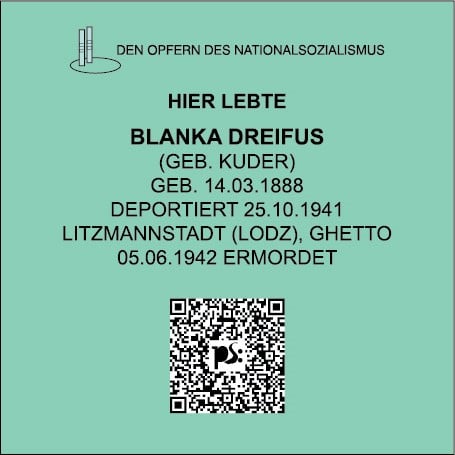 Blanka Dreifus lebte zur Zeit des Nationalsozialismus mit ihrer Familie in der Winzler Straße in einem Haus auf dem Schulgelände der Matzenbergschule. Im Zuge des nationalsozialistischen Vernichtungswahns kam Blanka Dreifus im Judenghetto Lodz ums Leben.